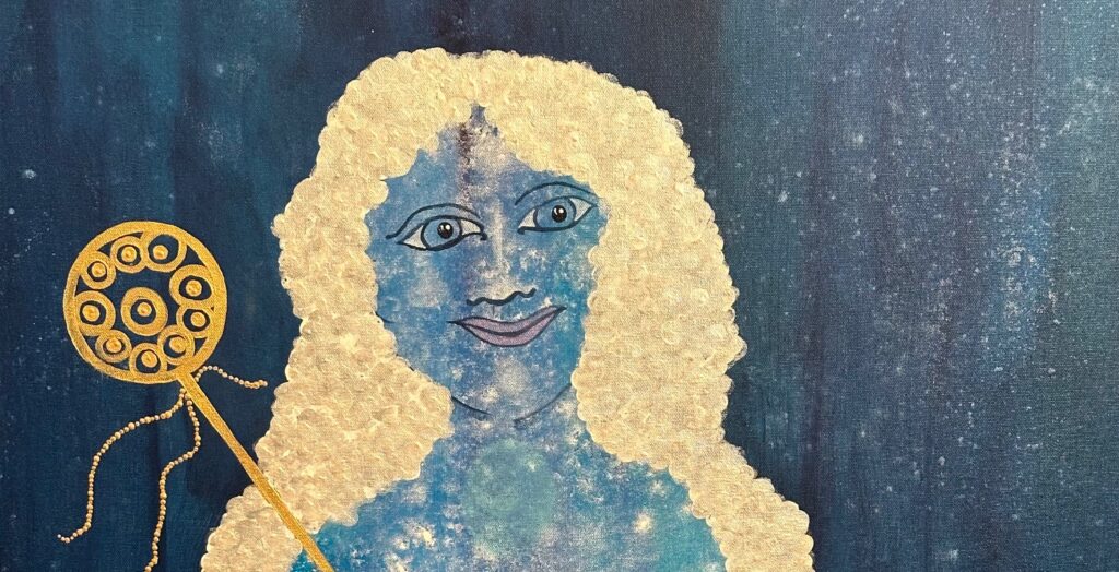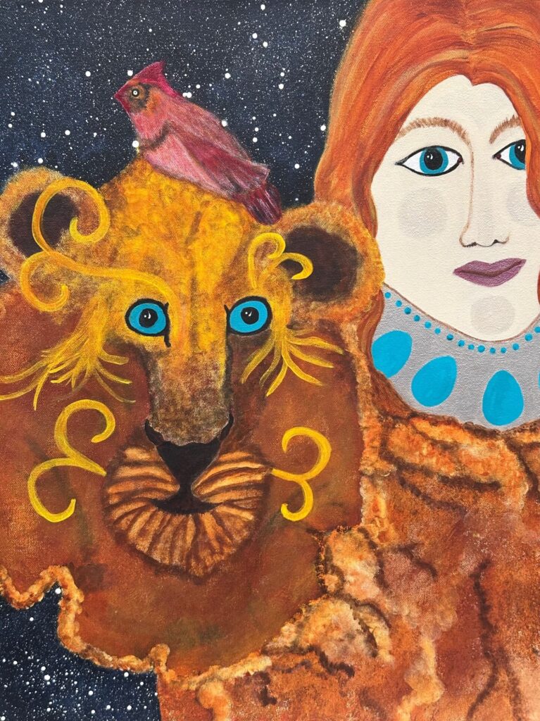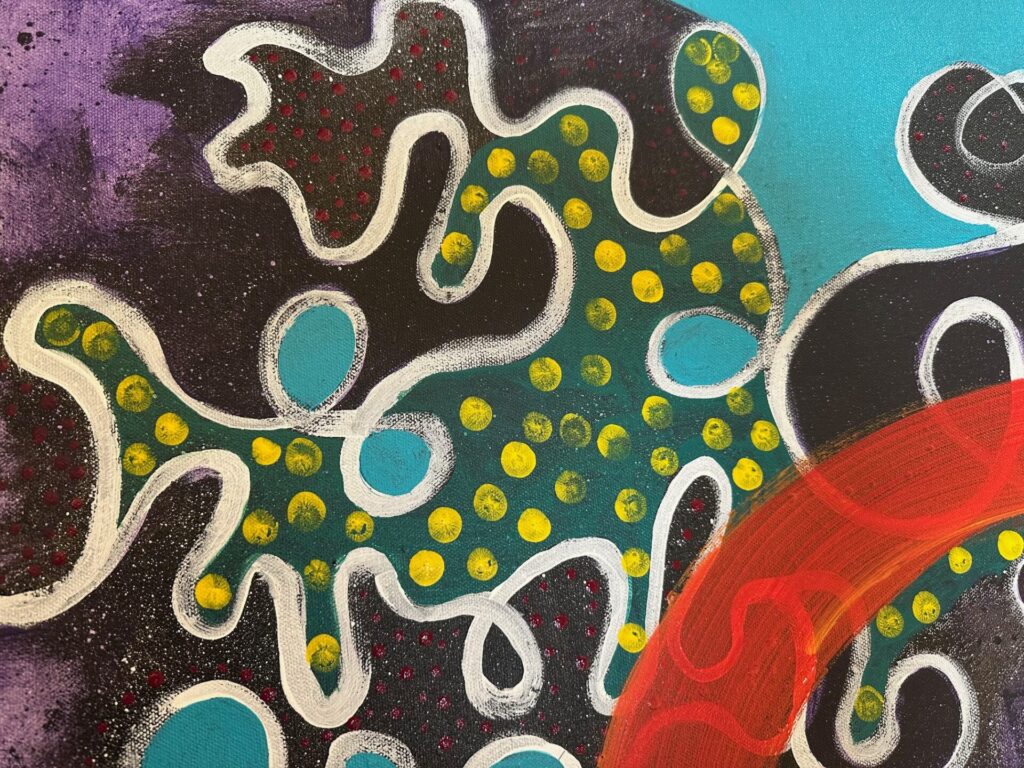 I watched and wondered and doodled. I mused and muttered and doodled some more. And then, I knew! I couldn’t think of something to add to my canvas because that exact symbol was already there! (Well, my version of it!)